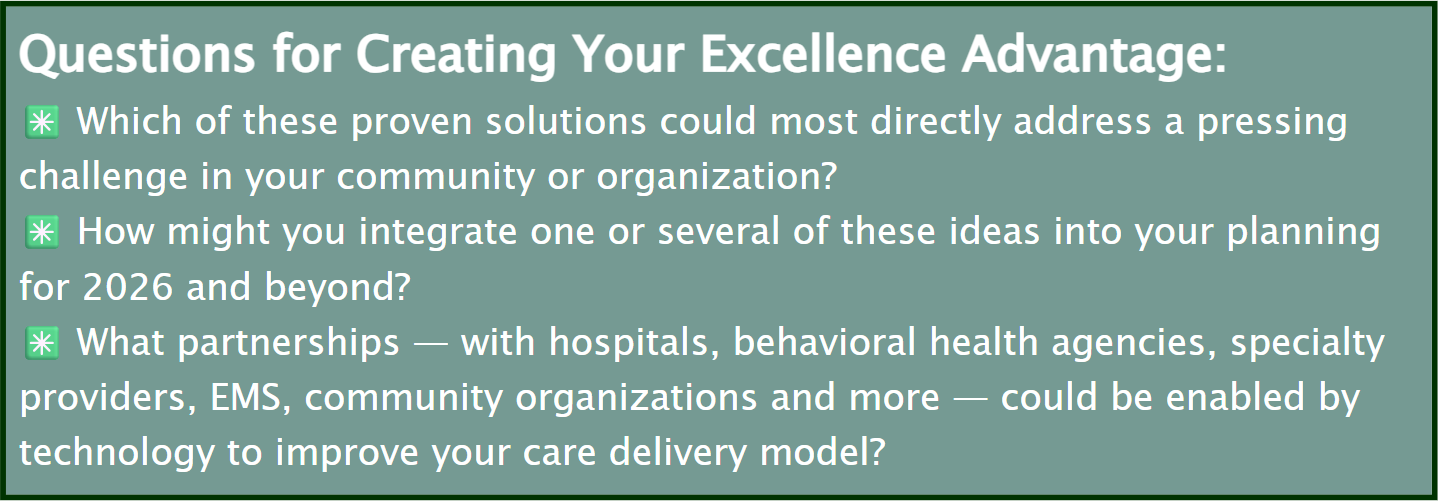 - Emergency Services: In 11 Proven Telehealth Solutions Improving Access to Emergency Care, he describes innovations like tele-stroke consults, behavioral health support in the ED, and en-route telemonitoring. These tools strengthen local emergency services, avoid unnecessary transfers, and bring specialty expertise to the bedside virtually.